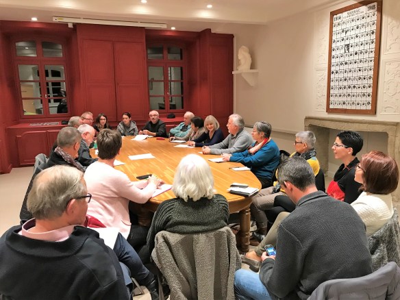 Après une première réunion en février pour faire le point sur les subventions, puis un seconde en septembre pour préparer la balade du journal du 2 juin 2019 les responsables des associations marsacoises se sont retrouvés ce soir : suivi des précédentes réunions, rappel sur les travaux en cours (club house, hôtel Roux), travaux et équipement à prévoir pour la salle des fêtes, bilan d’activité, calendrier des manifestations à venir ; mais aussi Marché de Noël du 9 décembre et rencontre des Marsac le 11 et 12 mai. L’année 2019 sera riche !