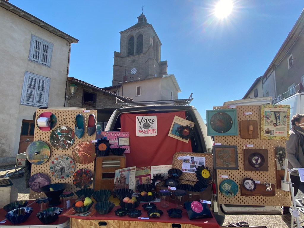 Jamais le marché à ma connaissance n’a eu autant de stands : 10 au total, fromages, plants de jardin, légumes, vin, fleurs, traiteur asiatique et même Lucie Créa, la muse du Vinyl !