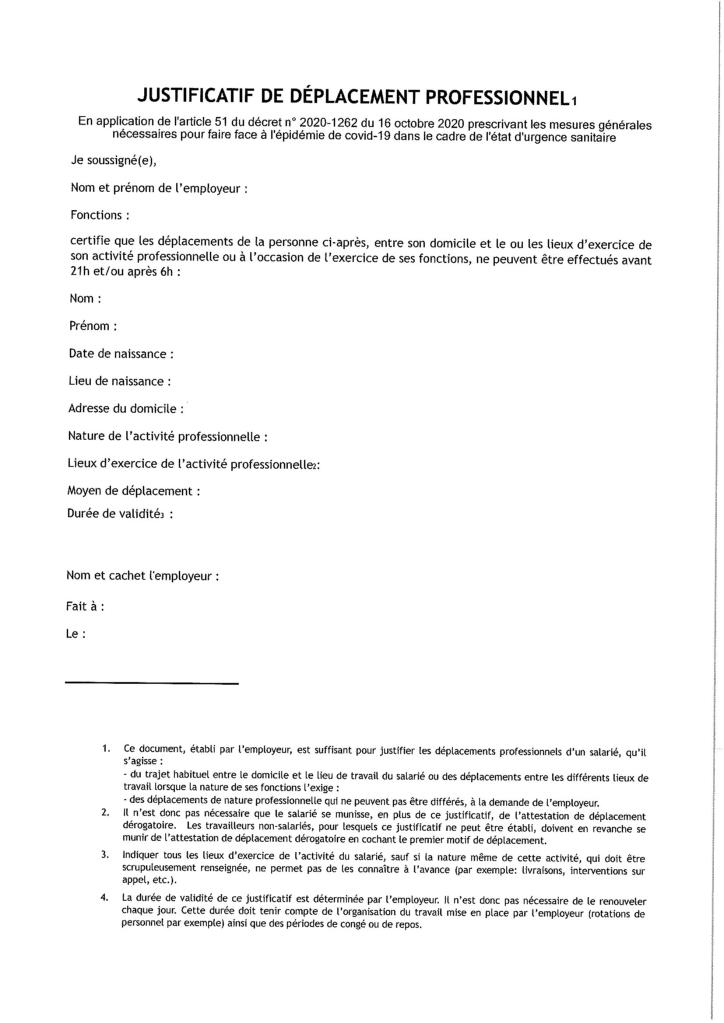 • Sur l’ensemble du département : interdiction des déplacements de 21h à 6h, sans préjudice des activités professionnelles, y compris dans l’espace public, sauf dérogations :