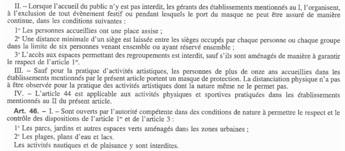 (exemples : musées, centres commerciaux, etc.) doivent respecter une jauge permettant de laisser à chaque personne de disposer d’un espace de 4 m².