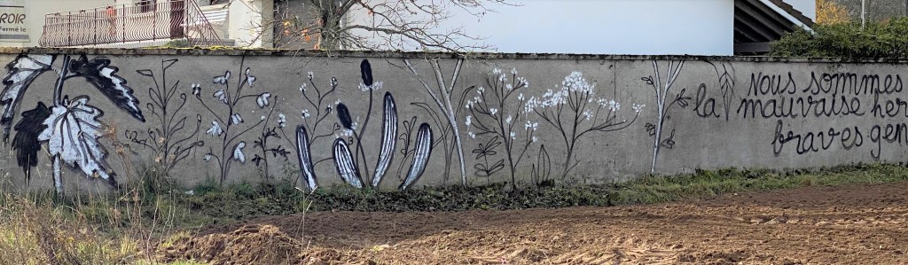 Sans être sûr d’avoir fait le tour des créations qui ont fleuri sur les murs marsacois il en est quelques unes qui ne passent pas inaperçues.