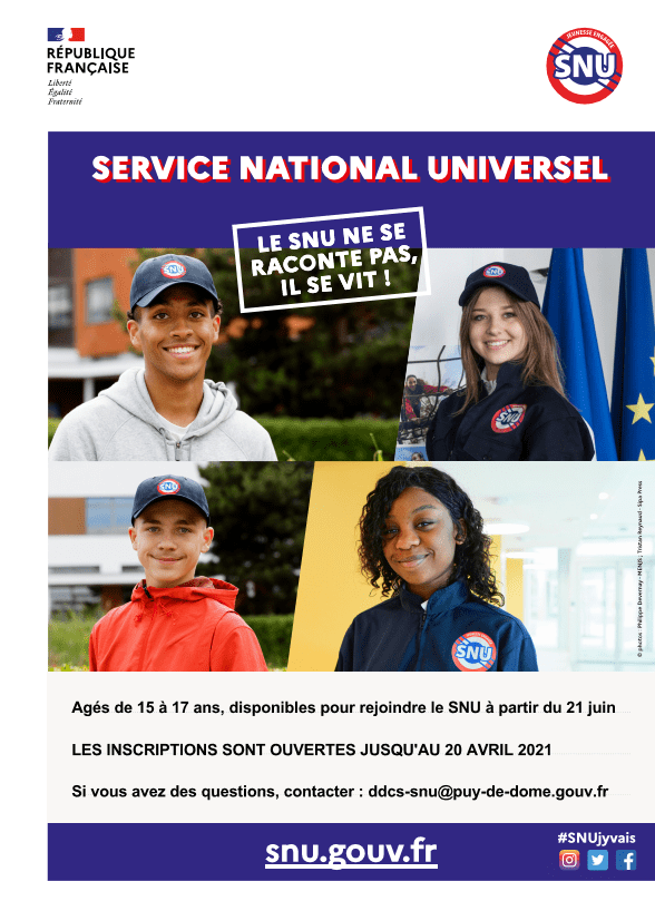 Service National Universel : inscriptions ouvertes jusqu’au 20 avril. Image Publié le 11 avril 2021 par Michel SAUVADE Partager : Cliquer pour partager sur X(ouvre dans une nouvelle fenêtre) X Cliquez pour partager sur Facebook(ouvre dans une nouvelle fenêtre) Facebook J’aime chargement… Similaire