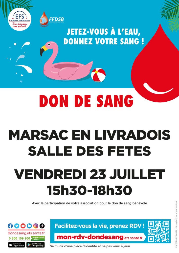 Don du sang le 23 juillet à Marsac-en-Livradois Image Publié le 30 juin 2021 par Michel SAUVADE Partager : Cliquer pour partager sur X(ouvre dans une nouvelle fenêtre) X Cliquez pour partager sur Facebook(ouvre dans une nouvelle fenêtre) Facebook J’aime chargement… Similaire