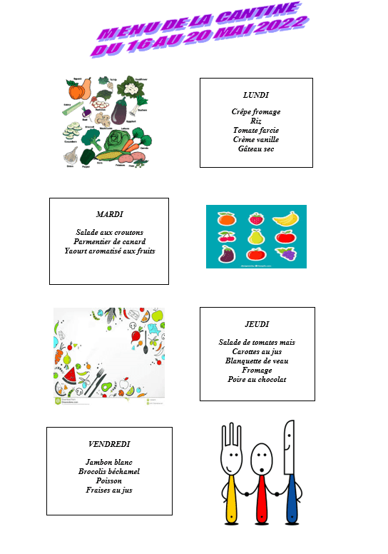 Cantine : menu du 16 au 20 mai 2022 Image Publié le 4 Mai 2022 par Michel SAUVADE Partager : Cliquer pour partager sur X(ouvre dans une nouvelle fenêtre) X Cliquez pour partager sur Facebook(ouvre dans une nouvelle fenêtre) Facebook J’aime chargement… Similaire