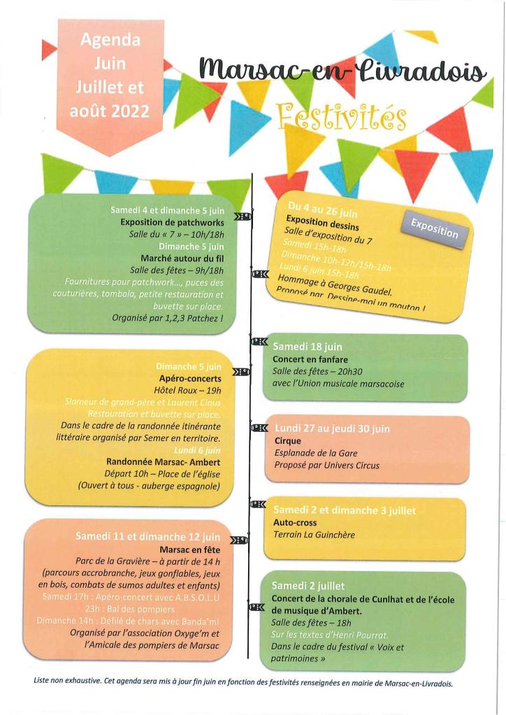 Marsac en Livradois : agenda des festivités, juin, juillet et août 2022 Image Publié le 12 juin 2022 par Michel SAUVADE Partager : Cliquer pour partager sur X(ouvre dans une nouvelle fenêtre) X Cliquez pour partager sur Facebook(ouvre dans une nouvelle fenêtre) Facebook J’aime chargement… Similaire