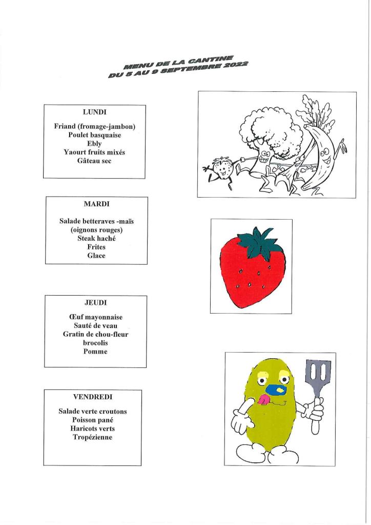 Cantine : menu du 5 au 9 septembre 2022