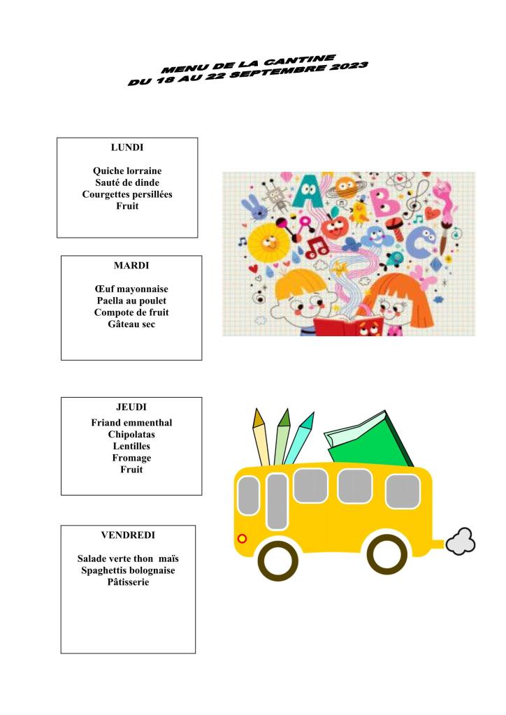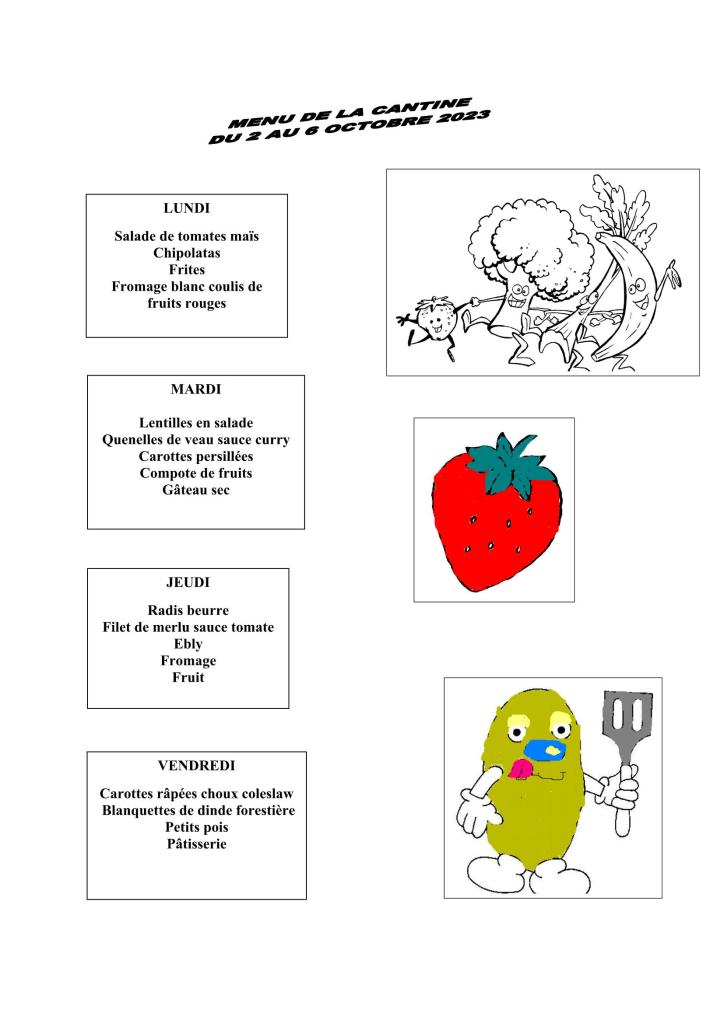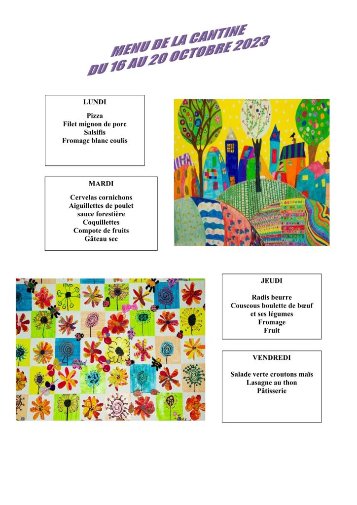 Cantine : menu du 16 au 20 octobre 2023