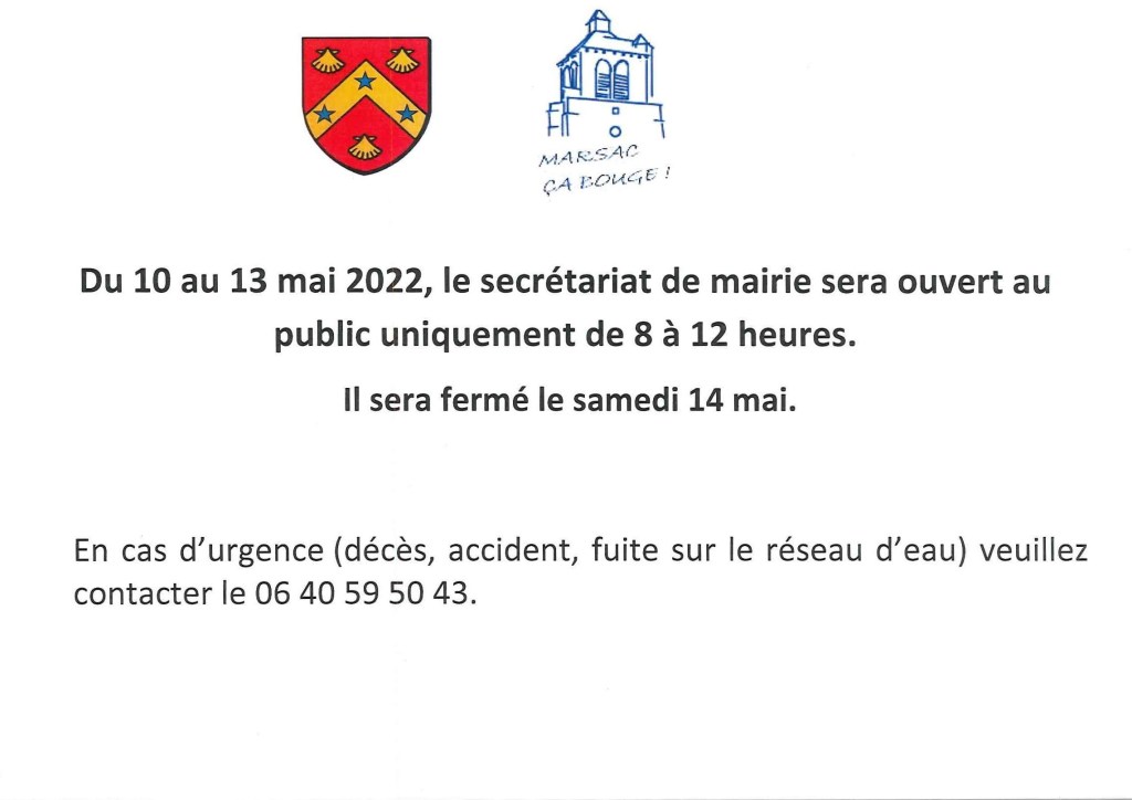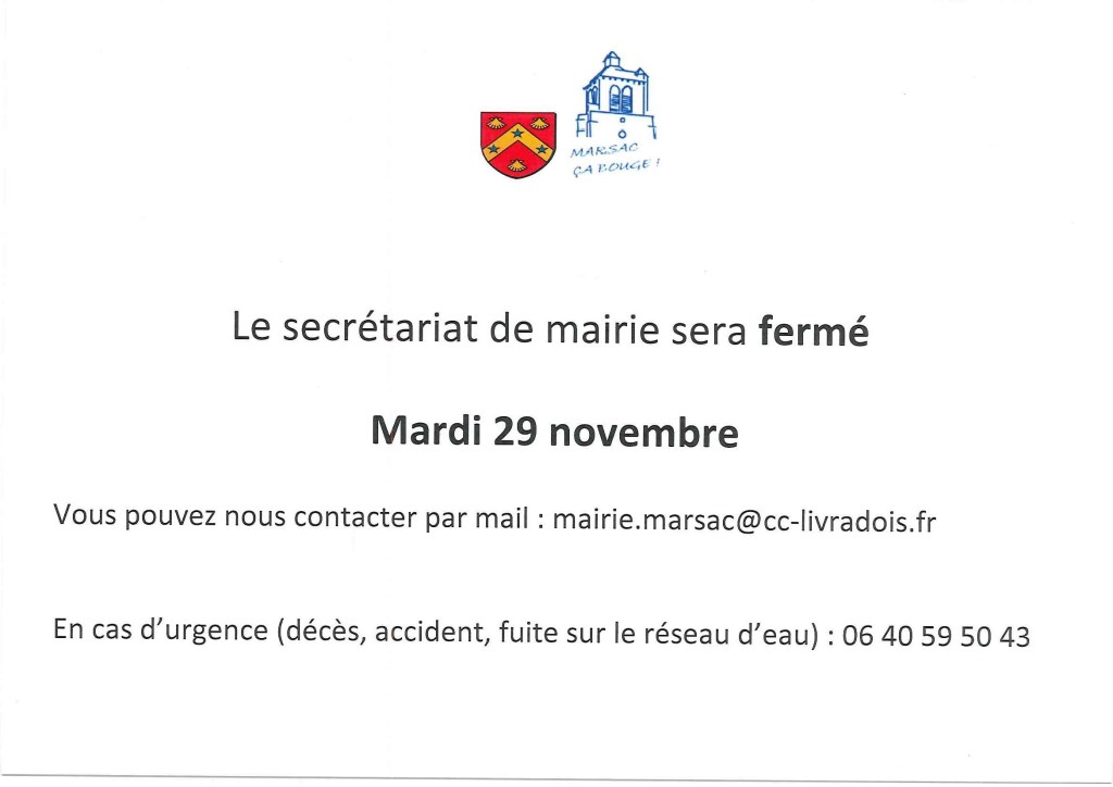 Le secrétariat de mairie sera fermé