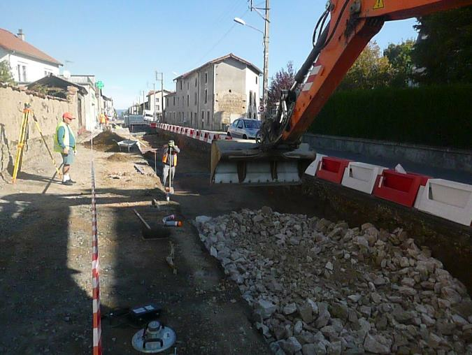 29 octobre 2019 : REUNION DE CHANTIER n° 11 : comme prévu le sens de circulation a été inversé. Les terrassements vont se poursuivre sur ce secteur, suivi du remblaiement en 0/150 et 0/60. Des essais de portance seront faits pour valider la qualité du remblaiement.
